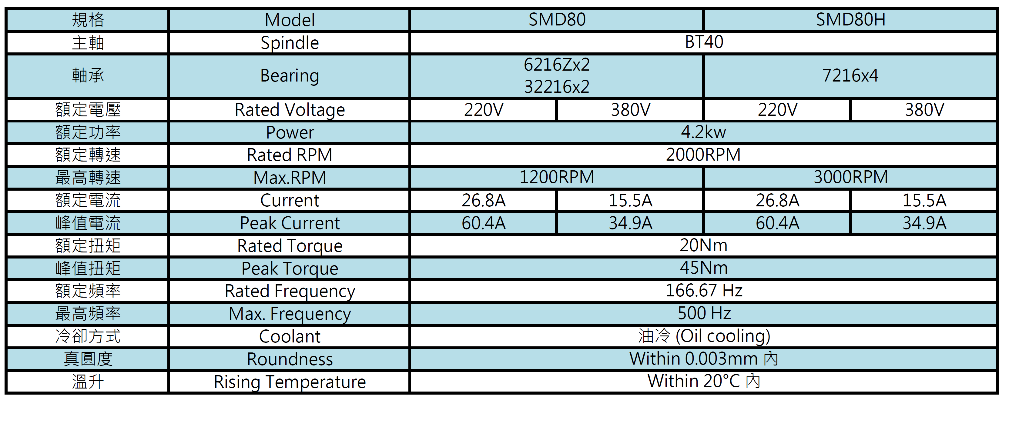 . Spindle taper BT40 is available