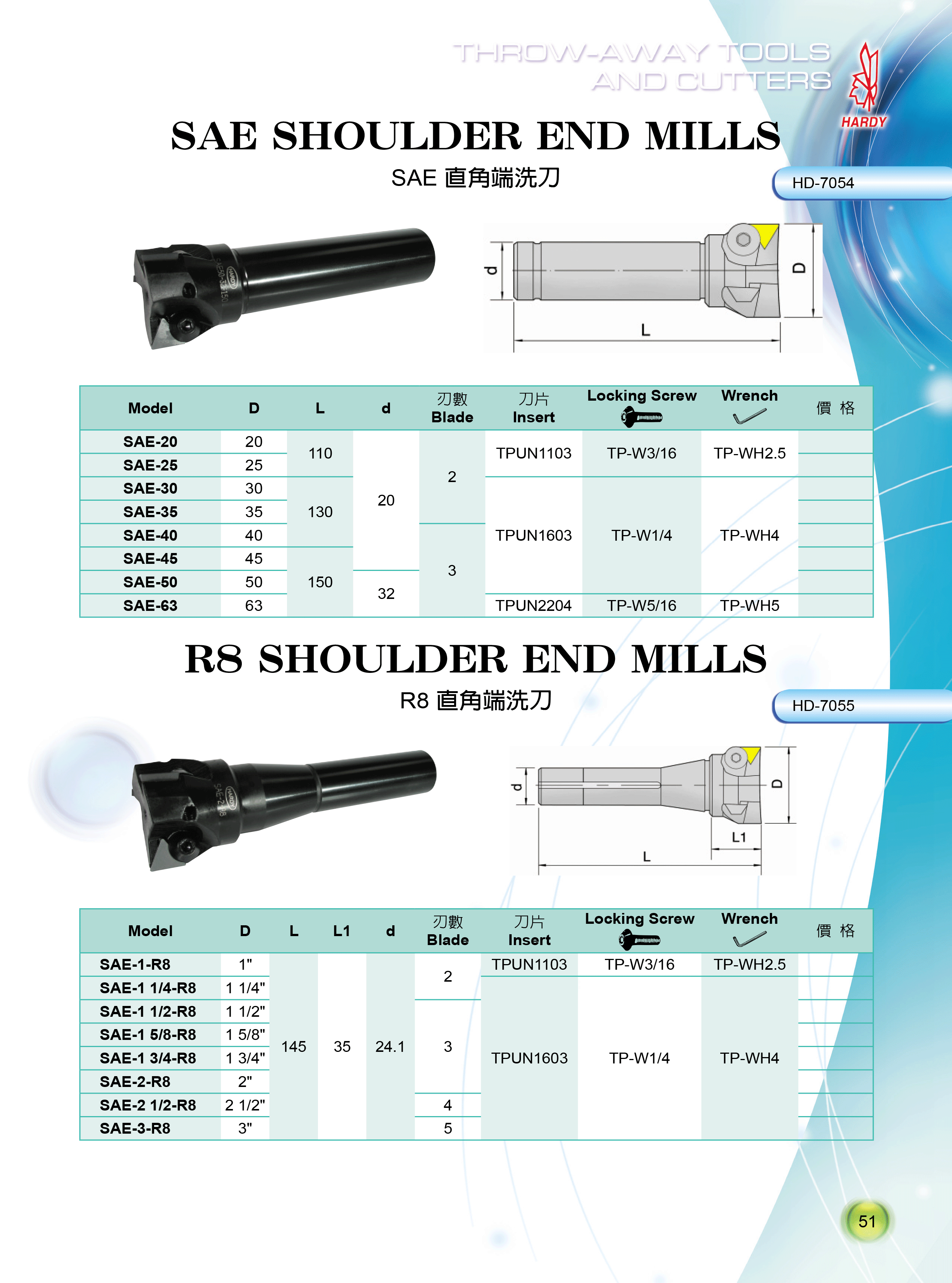 SAE 直角端銑刀
